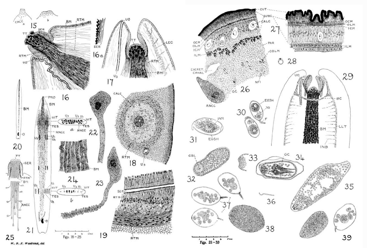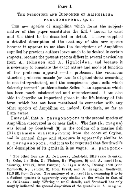 Woodland, W. N. F. 1923. On Amphilina paragonopora, sp. n. and a hitherto undescribed phase in the life-history of the genus. Quarterly Journal of Microscopical Science 67: 47-84. (6) Download PDFPoche, F. 1926. Das System der Platodaria. Archiv für Naturgeschichte 91(3): 241-436. (8) Download PDF |