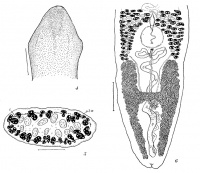 Plate XIII. Fig. 4. Pseudolytocestus differtus, toto, scolex. 5. Cross section, through testes. 6. Toto, reproductive systems. Explanation of Plate XIII: i - inner longitudinal cuticular muscles, olm - outer longitudinal muscles. Scale in figures, 0.5mm.
