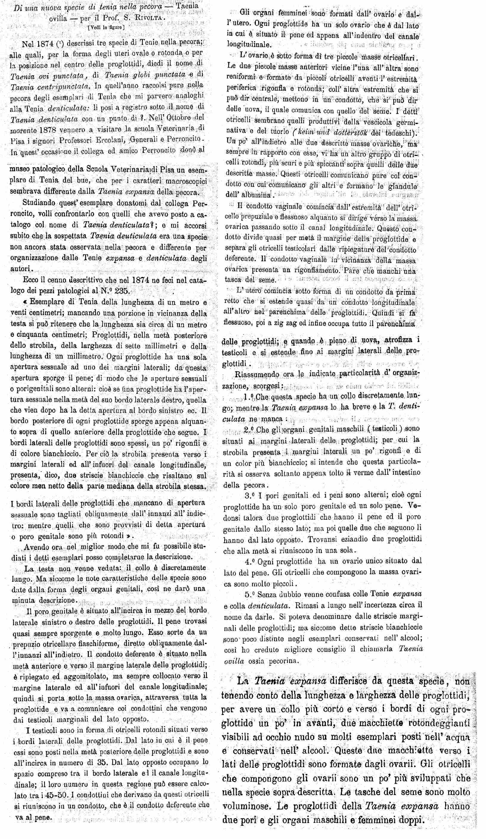 Rivolta, S. 1878. Di una nuova specie di tenia nella pecora - Taenia ovilla. Giornale di Anatomia, Fisiologia e Patologia degli Animali 10: 302-308. (5619) Download PDFRailliet, A. 1895. Traité de zoologie médicale et agricole. Deuxième édition. Asselin et Houzeau, Paris, 1303 pp. (4626) Download PDF |
