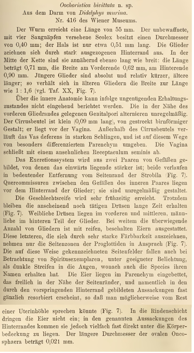 von Janicki, C. 1906. Studien an Säugetiercestoden. Zeitschrift für Wissenschaftliche Zoologie 8: 505-597. (2599) Download PDF |