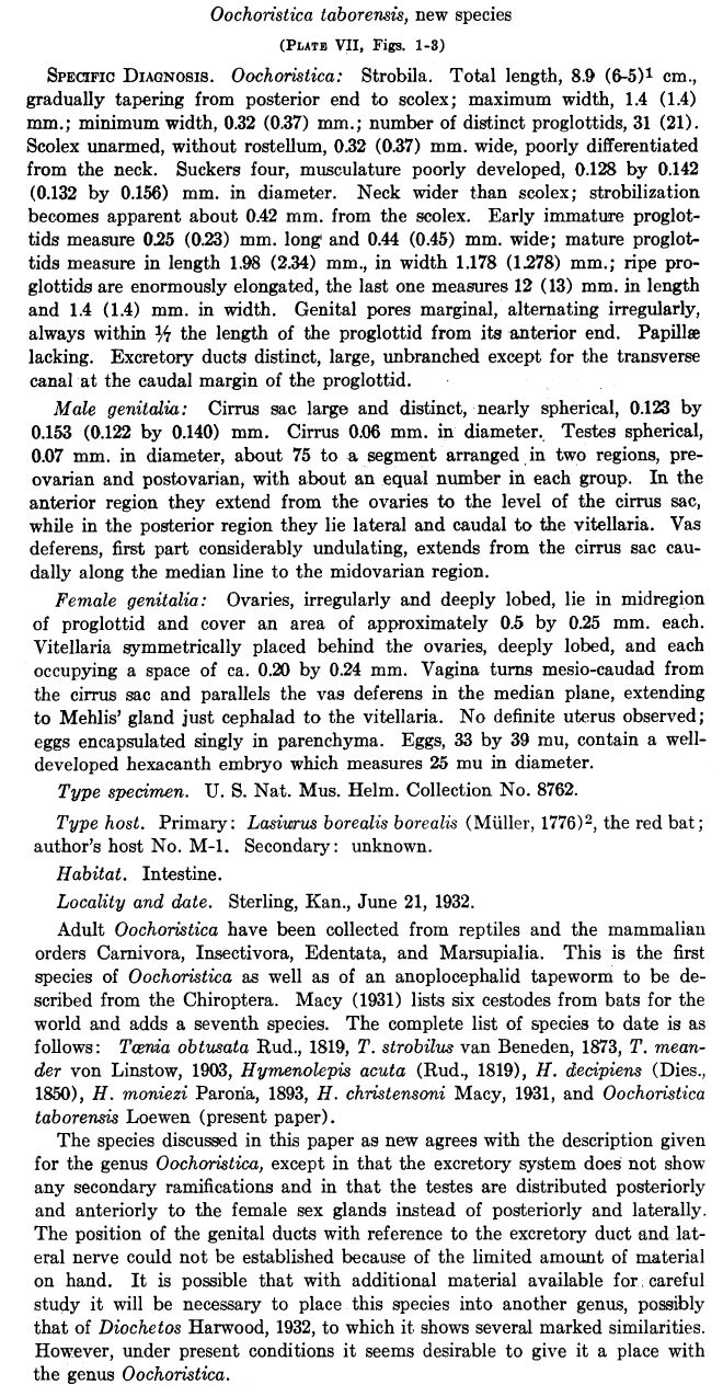 Loewen, S. L. 1934. A new cestode from a bat. Transactions of the Kansas Academy of Science 37: 257-261.