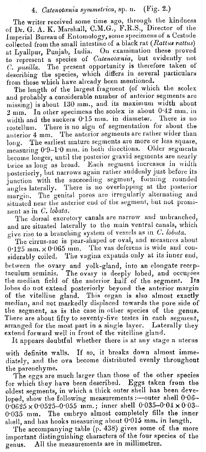 | Synonyms | Catenotaenia symmetrica Baylis, 1927 |