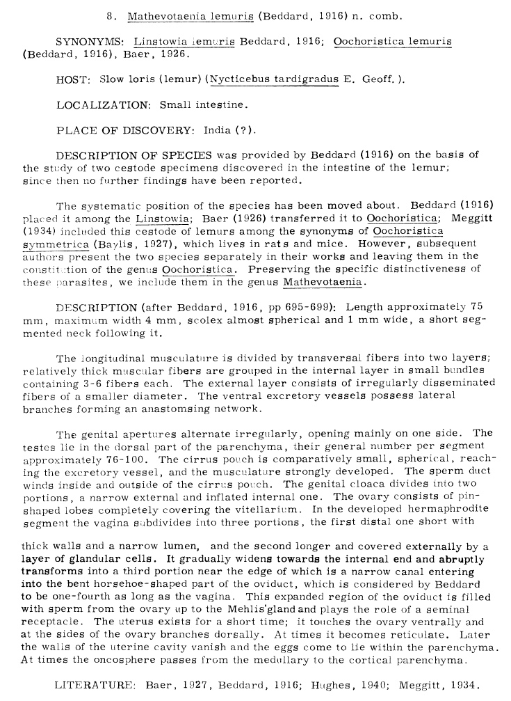Valid Name Mathevotaenia lemuris (Beddard, 1916) Spasskii, 1951