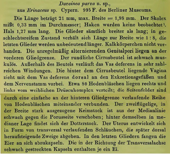 | Synonyms | Davainea parva Janicki, 1904 |