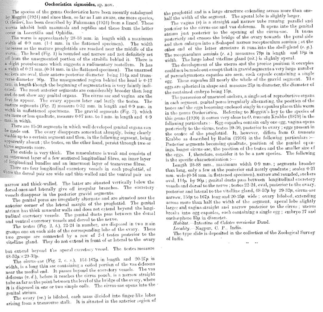 Moghe, M. A. 1926. Two new species of Cestodes from Indian Lizards. Records of the Indian Museum (a Journal of Indian Zoology) 28: 53-60. (4171) Download PDF |
