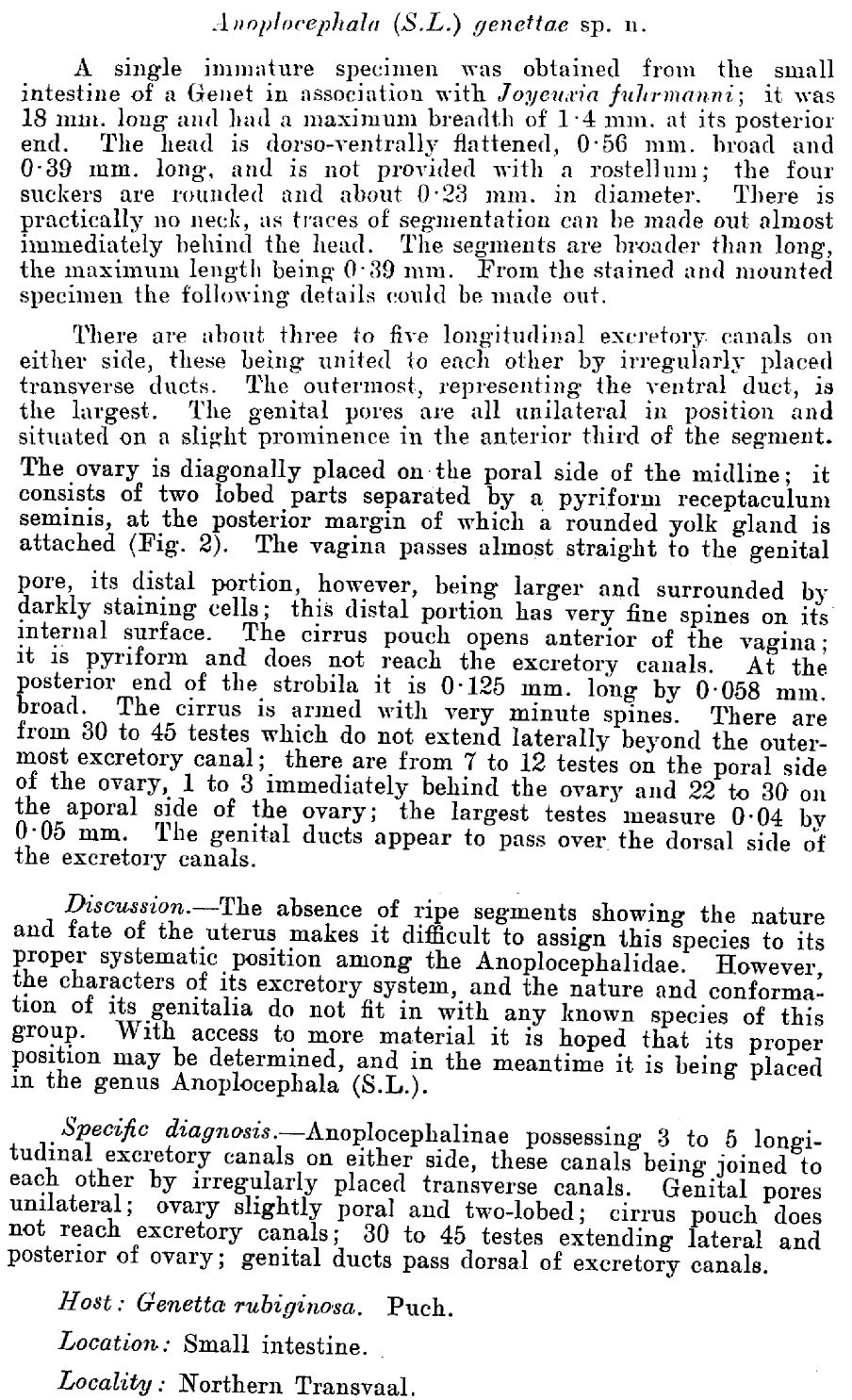 | Valid Name | Mathevotaenia genettae (Ortlepp, 1937) Beveridge, 2008 |