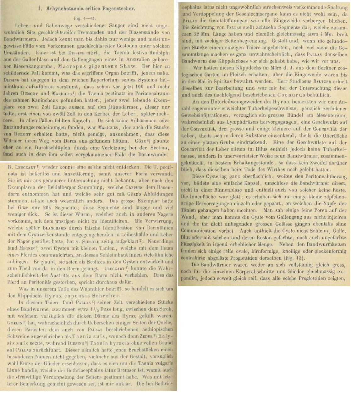 Pagenstecher, H. A. 1877. Zur Naturgeschichte der Cestoden. Zeitschrift für Wissenschaftliche Zoologie 30: 171-193. (4795) Download PDF |