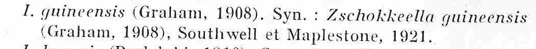 | Synonyms | Davainea guineensis Graham, 1909; Zschokkeella guineensis (Graham, 1909) Southwell & Maplestone, 1921 |