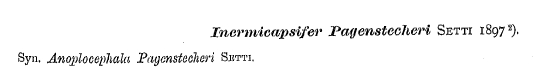 | Valid Name | Pericapsifer pagenstecheri (Setti, 1897) Spasskii, 1951 |