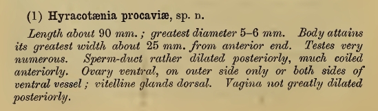 Beddard, F. E. 1912. Contributions to the anatomy and systematic arrangement of the Cestoidea. IV. On a species of Inermicapsifer from the hyrax, and the genera Zschokkeella, Thysanotaenia, and Hyracotaenia. Proceedings of the Zoological Society of London 1912(2): 576-607. (4998) Download PDF |