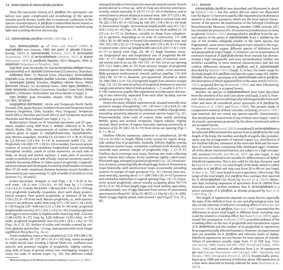 Hernández-Orts, J. S., R. Kuchta, T. Kuzmina, J. Brabec, and T. Scholz T. 2015. Unexpected morphological plasticity and global geographical distribution of the Pacific human tapeworm Adenocephalus pacificus (syn. Diphyllobothrium pacificum): molecular and morphological survey. Acta Tropica 149: 168–178.