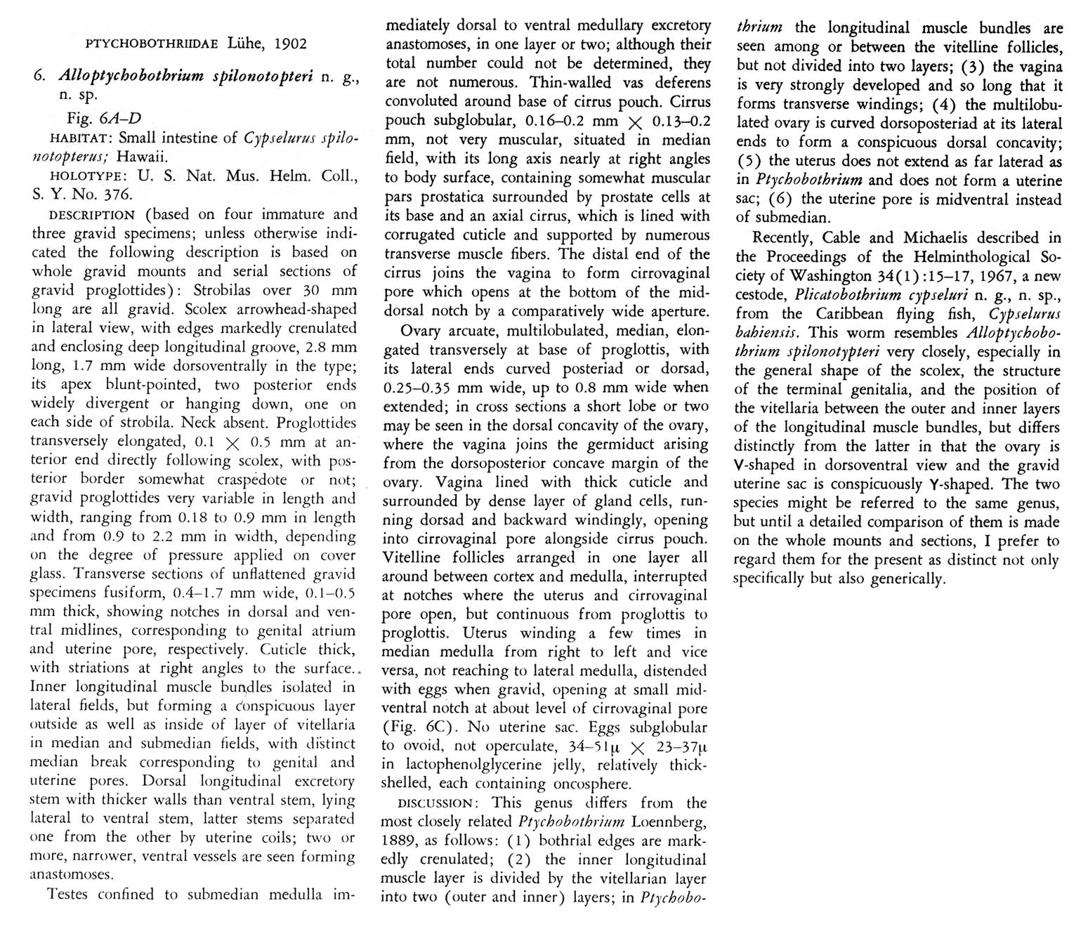 Yamaguti, S. 1968. Cestode parasites of Hawaiian fishes. Pacific Science 12: 21-36. (513) Download PDF |