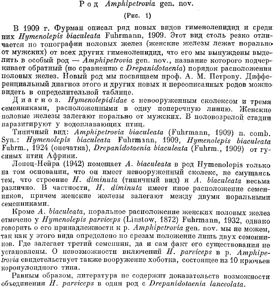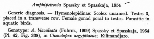 Scientific Name Notes The genus Amphipetrovia was placed to a synonym of Hymenolepis (after Czaplinski & Vaucher, 1994) the independent status of the genus was restored by Makarikov et al. (2015)