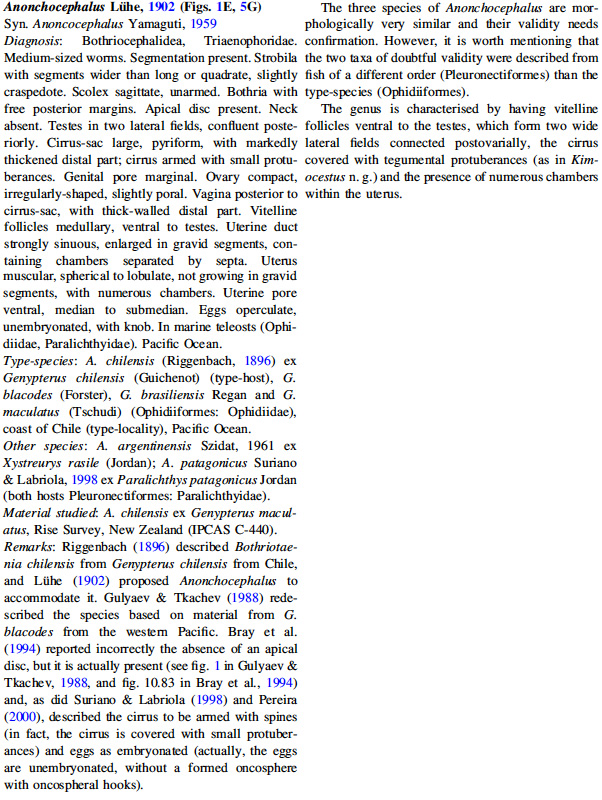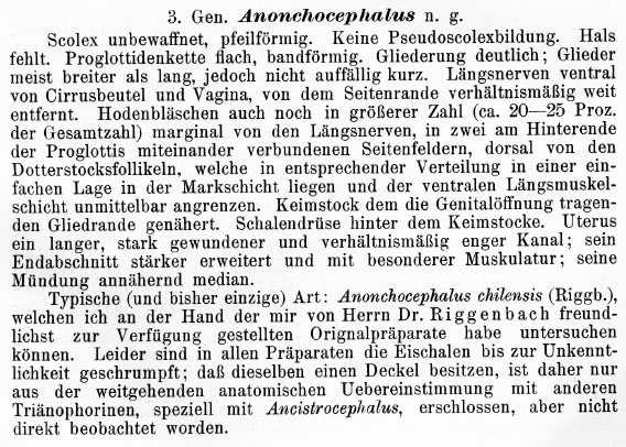 Type Species Anonchocephalus chilensis (Riggenbach, 1896) Lühe, 1902