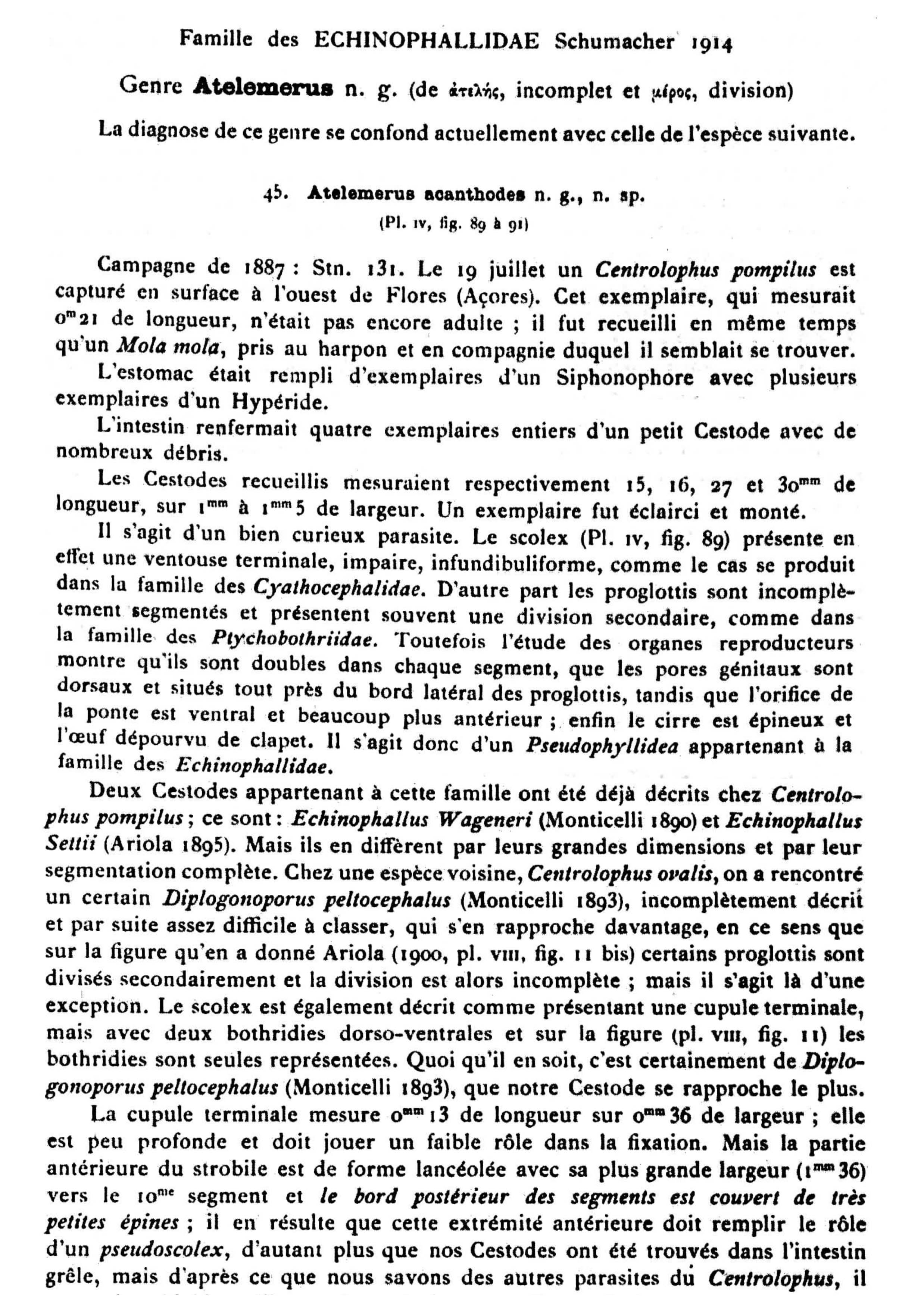 Guiart, J. 1935. Résultats des Campagnes Scientifiques du Albert Ier, Prince Monaco. Cestodes parasites provenant des campagnes scientifiques de S. A. S. le Prince Albert Ier de Monaco (1886-1913). Imprimerie de Monaco, Monaco, 105 pp. (209) Download PDF |