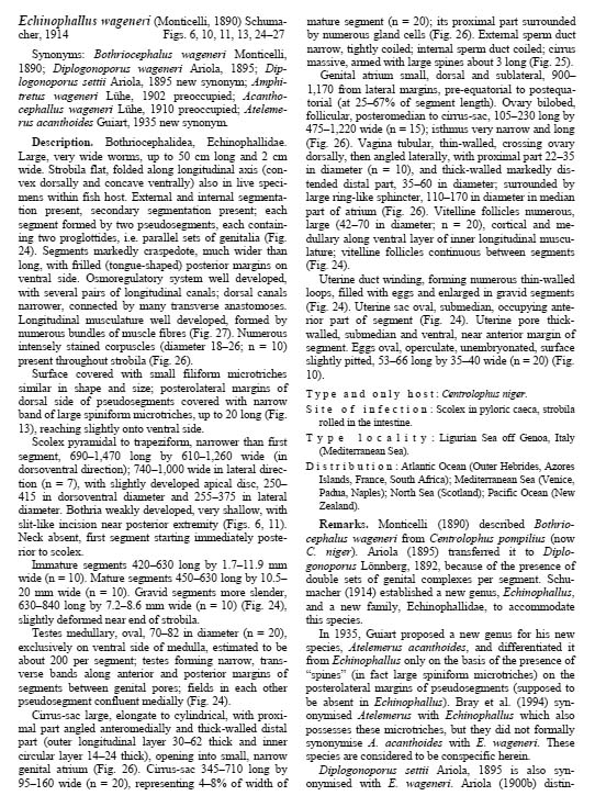 | Valid Name | Echinobothrium wageneri (Monticelli, 1890) |