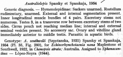 | Type Species | Australiolepis southwelli (Szpotanska, 1931) Spasskii & Spasskaya, 1954 |