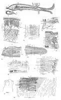 Fig. 8. (a) Sagittal section of cirrus-sac. (b) Vesicula sem inalis in the same section. Fig. 17. Transverse section of muscular system. Fig. 60. Scolex. Fig. 61. Sagittal sect.ion of fused cirrus-sac, with common genital duct and opening. Fig. 62. Transverse section of part of male and female genital apparatus. Fig. 63. Transverse section of segment, showing structure of ovary and genital ducts. Fig. 64. Sagittal section of part of segment, showing arrangement of ovaries and uterine coils. Fig. 65. Transverse section of male and female ducts (enlarged). Fig. 66. Transverse section of segment. Fig. 67. Sagittal section of segment, showing male copulatory organs. Fig. 68. Horizontal section of part of strobila, showing arrangement of genital organs.