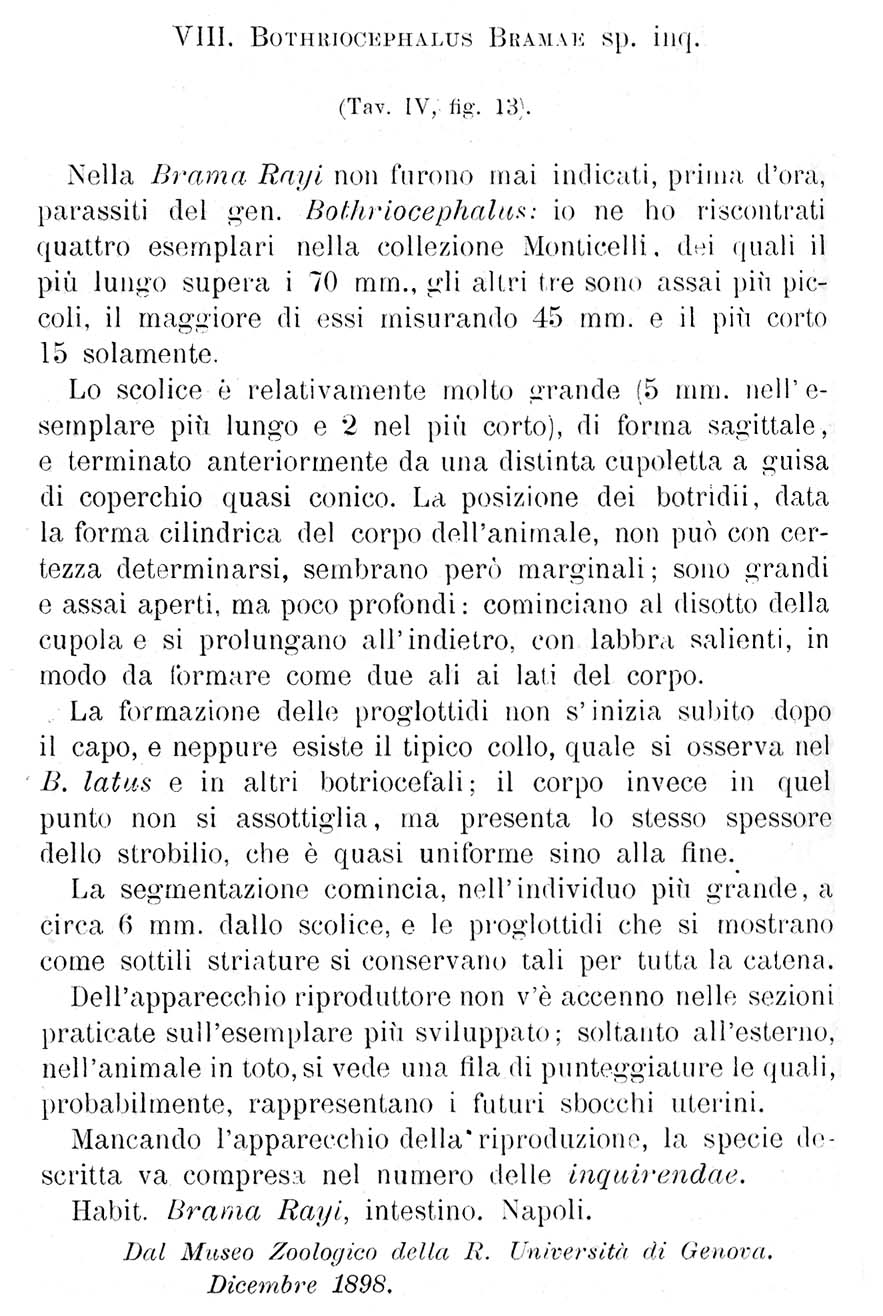 Ariola, V. 1899. Osservazioni sopra alcuni Dibothrii dei pesci. Boll. del Musei di Zoologica e Anatomia Comparata della R. Univ. di Genova 73: 1-11.