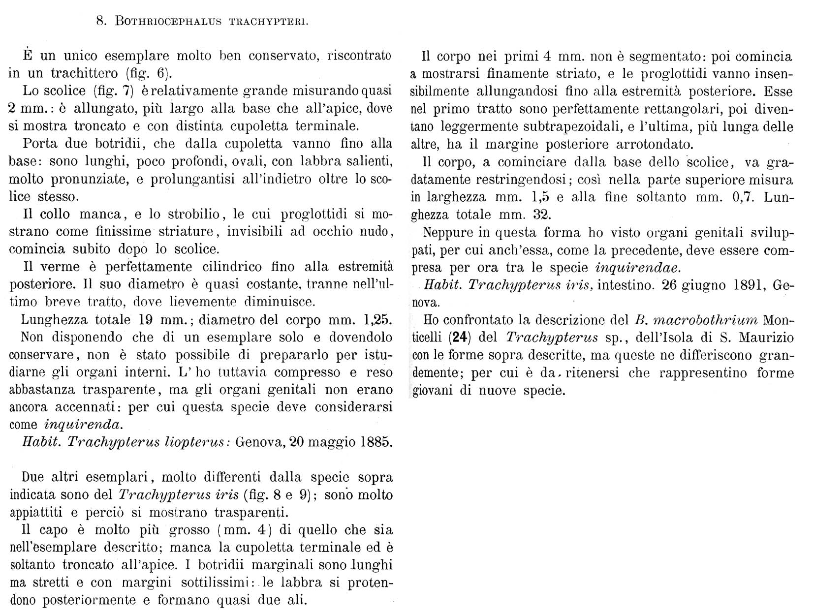 | Scientific Name Notes | Bothriocephalus trachypteriiris Ariola, 1896 or Bothriocephalus trachypteriliopteri Ariola, 1896 are incorrect names - immature specimens - Ariola 1899 and 1900 reported as synonym of his new name Diplogonoporus stossichi Ariola, 1899 |