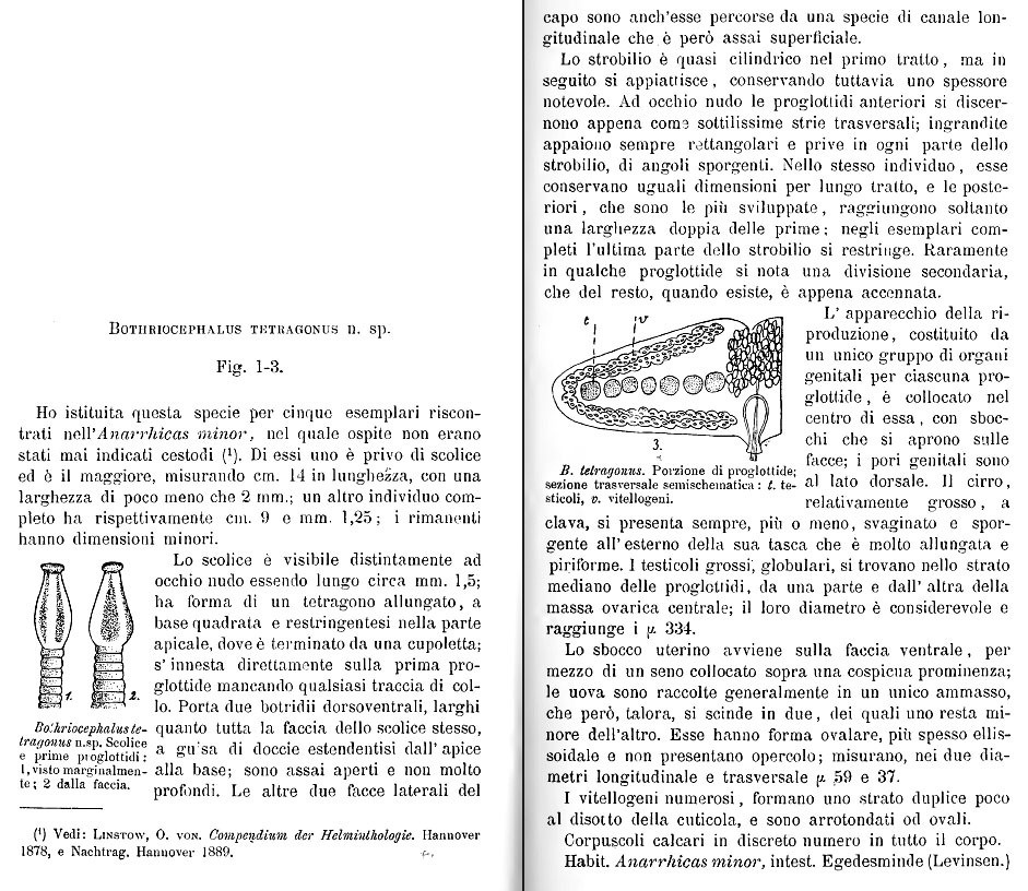 Ariola, V. 1899. Notizie sopra alcuni Botriocefali del Museo Universitario di Copenaghen. Bolletino dei Musei di Zoologia e Anatomua Comparata della R. Universita di Genova 89: 1–8. (7058) Download PDF |