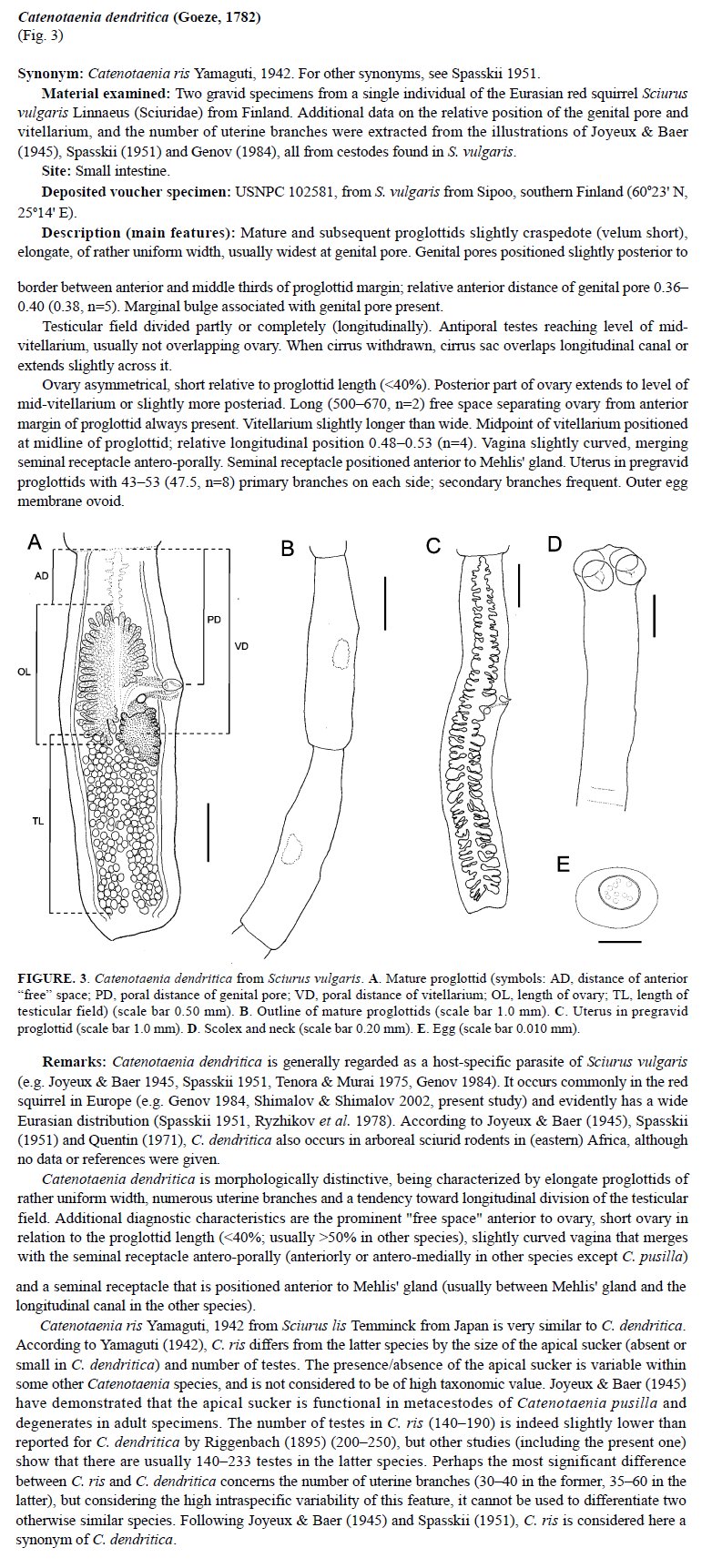 | Valid Name | Catenotaenia dendritica (Goeze, 1782) Janicki, 1904 |