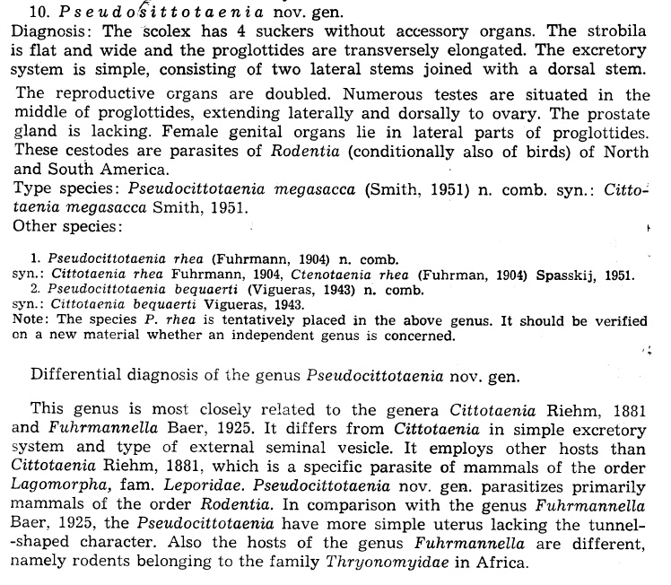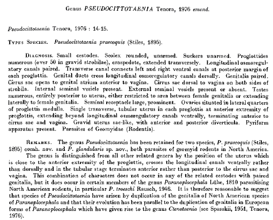 | Type Species | Pseudocittotaenia praecoquus (Stiles, 1895) Tenora, 1976 |