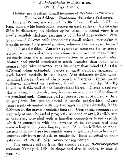 Yamaguti, S. 1952. Studies on the helminth fauna of Japan. Part 49. Cestodes of fishes, II. Acta Medicinae Okayama 8: 1-76. (511) Download PDF |