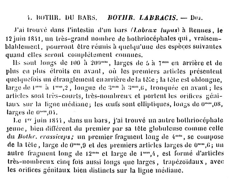 Dujardin, F. 1845. Histoire Naturelle des Helminthes ou Vers Intestinaux. Librairie Encyclopédique de Roret, Paris, 654 pp & 12 Plat pp. (2594) Download PDF |