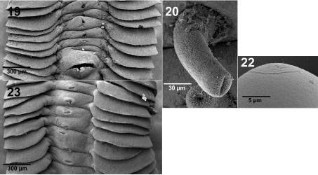 Penetrocephalus ganapattii (Rao, 1954). 19, 23, Gravid strobila; 19, Ventral view; 23, Dorsal view. 20, Detailed view of the envaginated cirrus. 22, Operculum of the egg.
