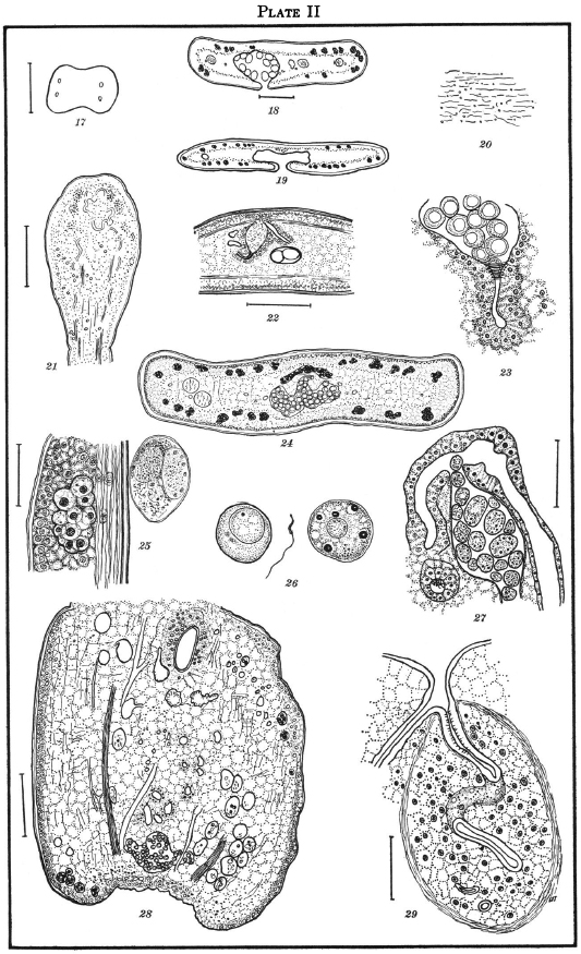All figures are camera lucida drawings unless otherwise stated. The projected scale for figures 9, 12, 15, I6, i8, I9, 2I, 22, 24, and 28=0.20 mm.; for figures 6, 13, 2... MoreEXPLANATION OF PLATES I AND II