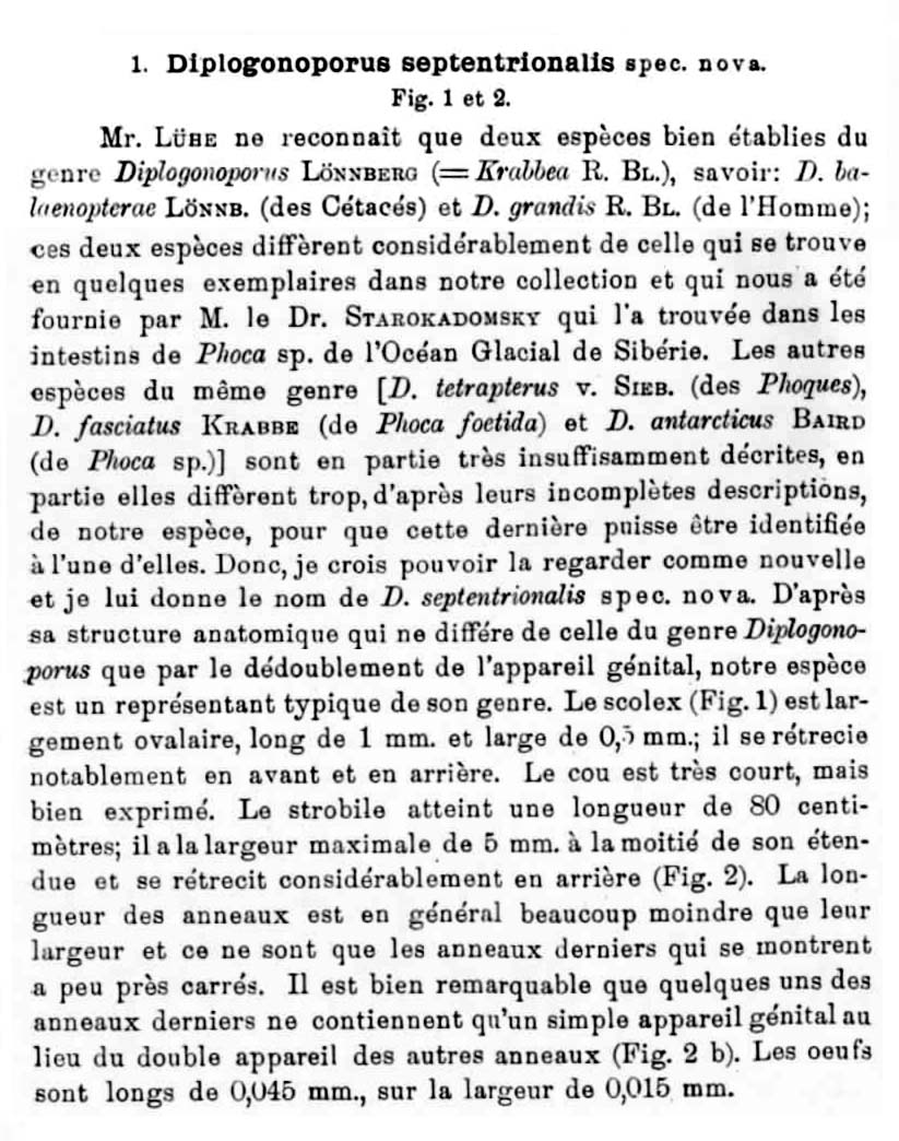 Cholodkovsky, N. 1914. Cestodes nouveaux ou peu connus. Troisième série. Annuaire du Musée Zoologique de l'Académie Impériale des Sciences de Petrograd 19(4): 516–523. (6248) Download PDF |