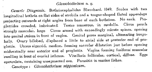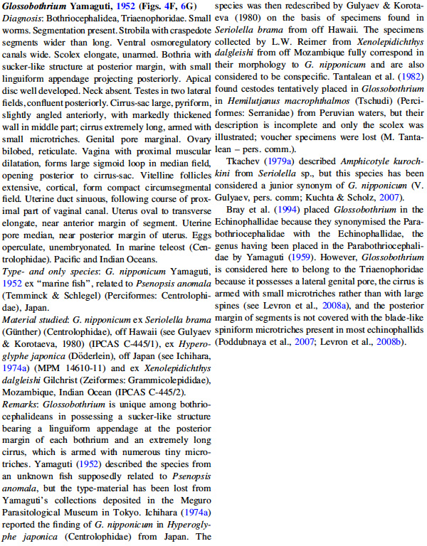 | Type Species | Glossobothrium nipponicum Yamaguti, 1952 |