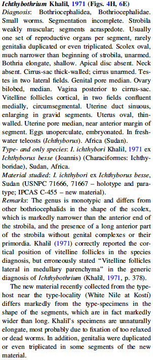 Type Species Ichthybothrium ichthybori Khalil, 1971