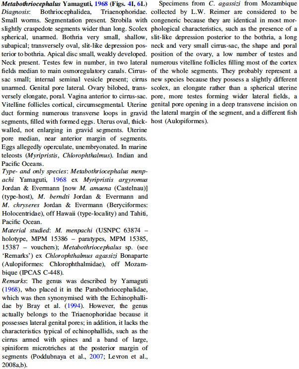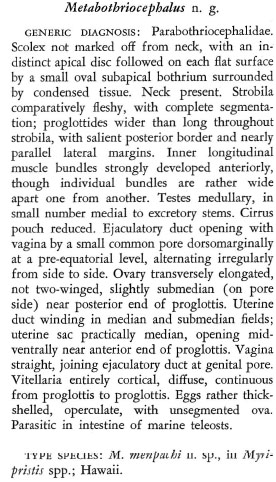 | Type Species | Metabothriocephalus menpachi Yamaguti, 1968 |