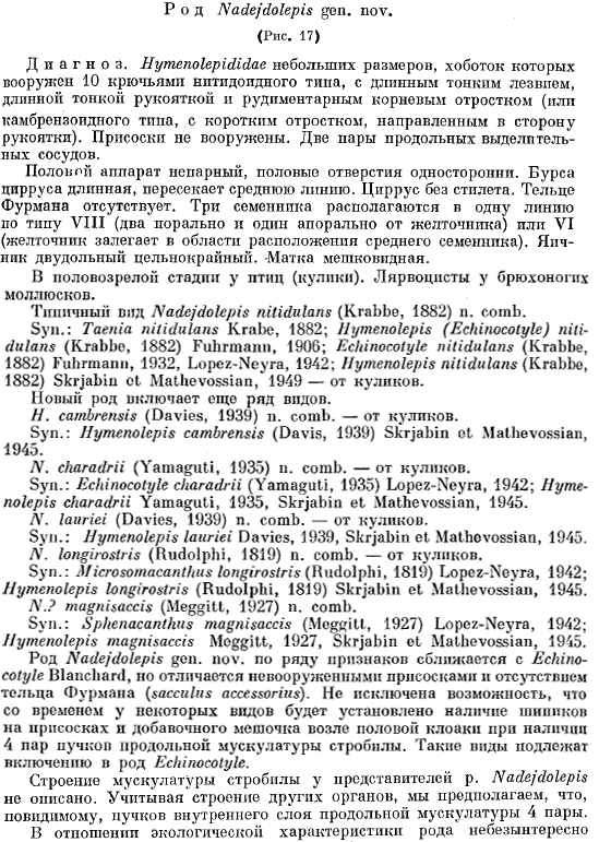 Spasskii, A. A. and L. P. Spasskaya. 1954. [Elaboration of the classification of the Hymenolepidae parasitizing birds] (In Russian). Trudy Gel‘mintologicheskoi Laboratorii. Akademiya Nauk SSSR 7: 55-119. (2684) Download PDF |