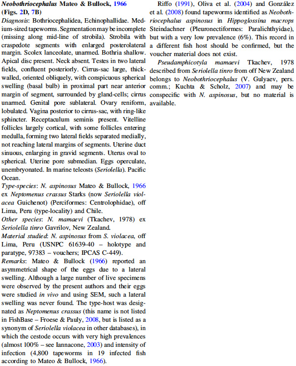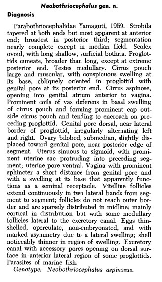 | Type Species | Neobothriocephalus aspinosus Mateo & Bullock, 1966 |