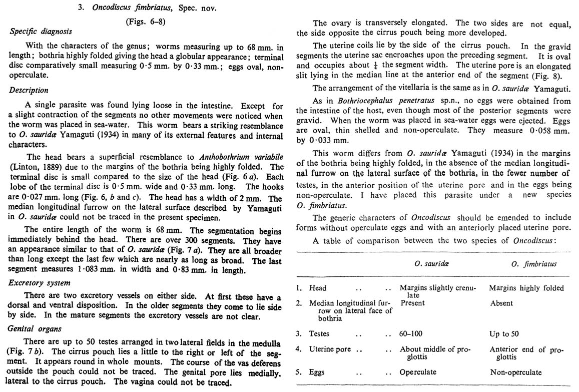 | Valid Name | Oncodiscus sauridae Yamaguti, 1934 |