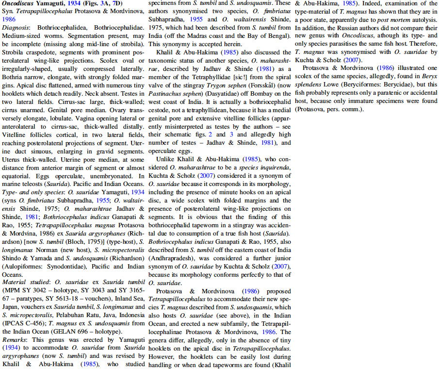 | Type Species | Oncodiscus sauridae Yamaguti, 1934 |