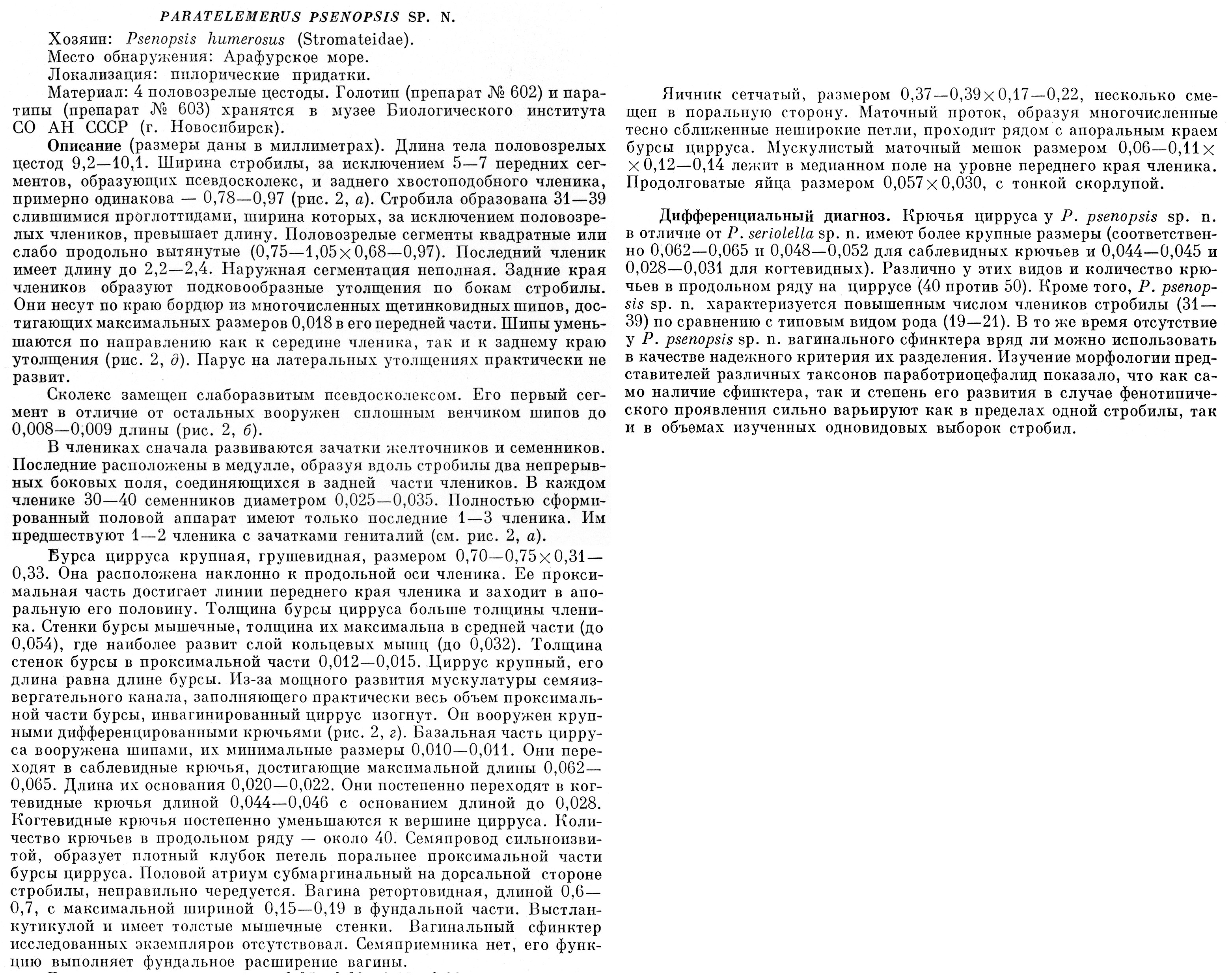 | Valid Name | Parabothriocephaloides psenopsis (Gulyaev, Korotaeva & Kurochkin, 1989) Kuchta & Scholz, 2007 |