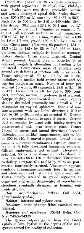 | Total Number of Type Specimens | -based on 19 complete specimens with gravid segments |