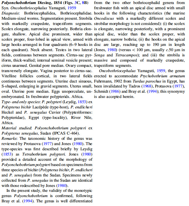 | Type Species | Polyonchobothrium polypteri (Leydig, 1853) Lühe, 1900 |