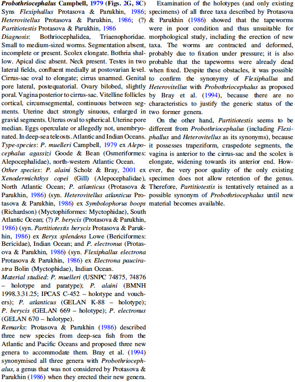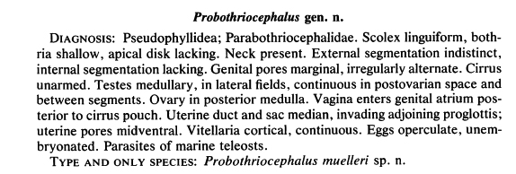 | Type Species | Probothriocephalus muelleri Campbell, 1979 |