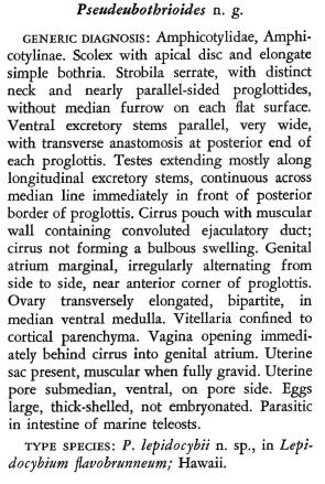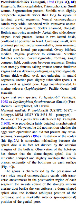 | Type Species | Pseudeubothrioides lepidocybii Yamaguti, 1968 |