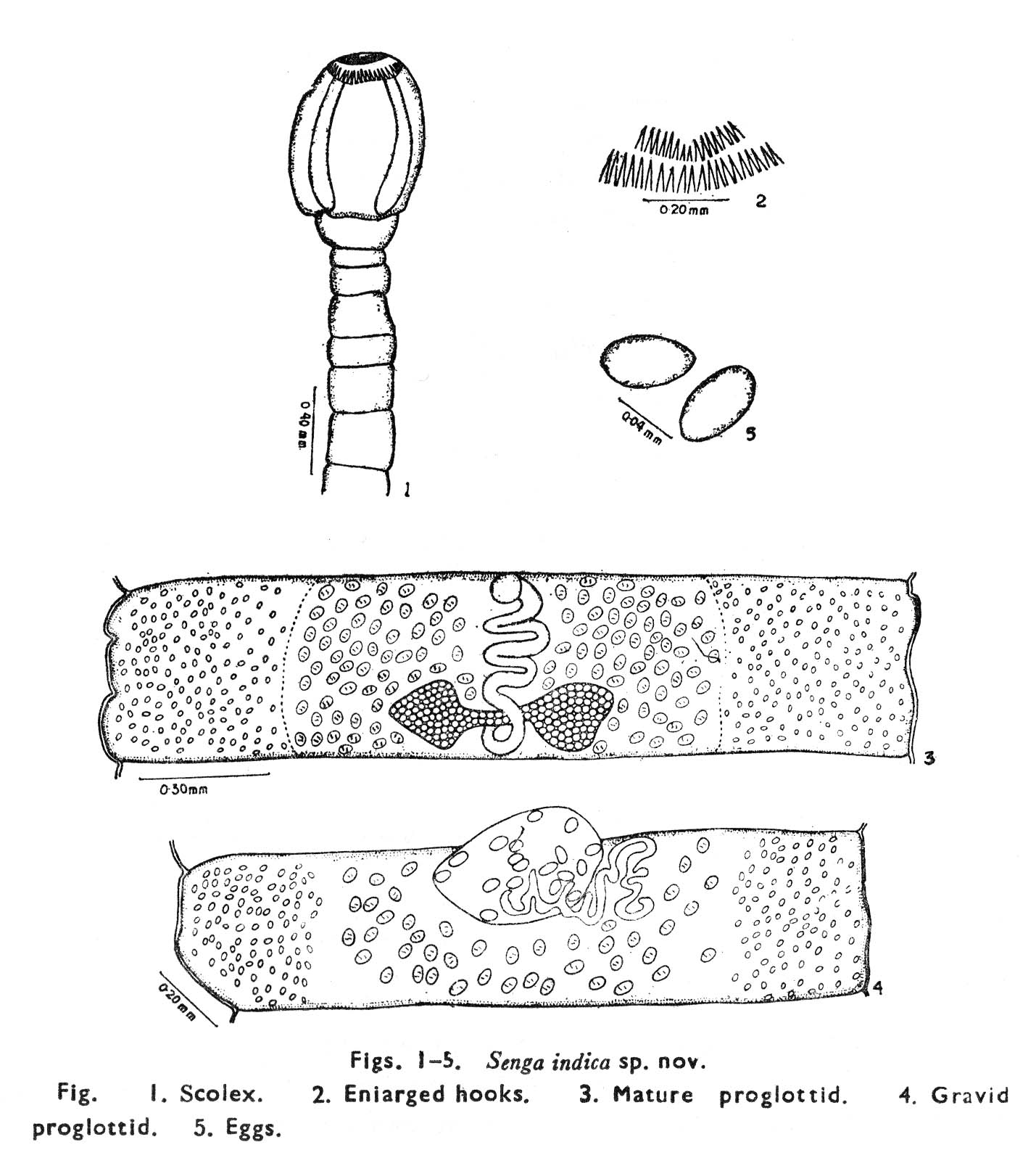 Gupta, V., and S., Parmar. 1985. On a new cestode, Senga indica sp. nov. from the intestine of freshwater fish, Mastacembelus armatus (Lacep.) from Lucknow. Indian Jounral of Helminthology 37: 96-99. (7331) Download PDF |