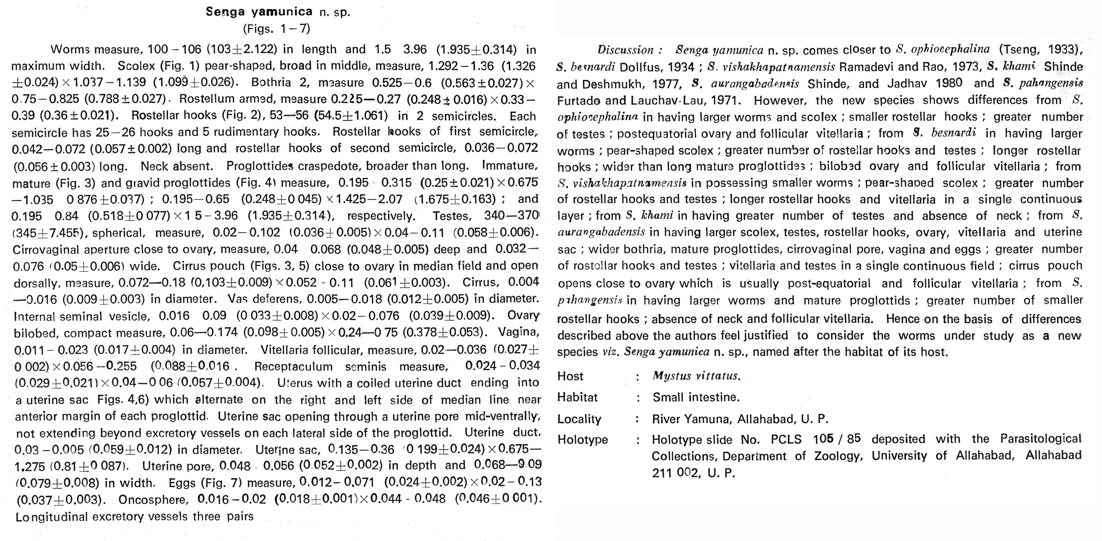 | Specimen Notes | -material deposited at parasitol. coll., Dep. Zoology, Universtiy of Allahabad, Allahabad. |