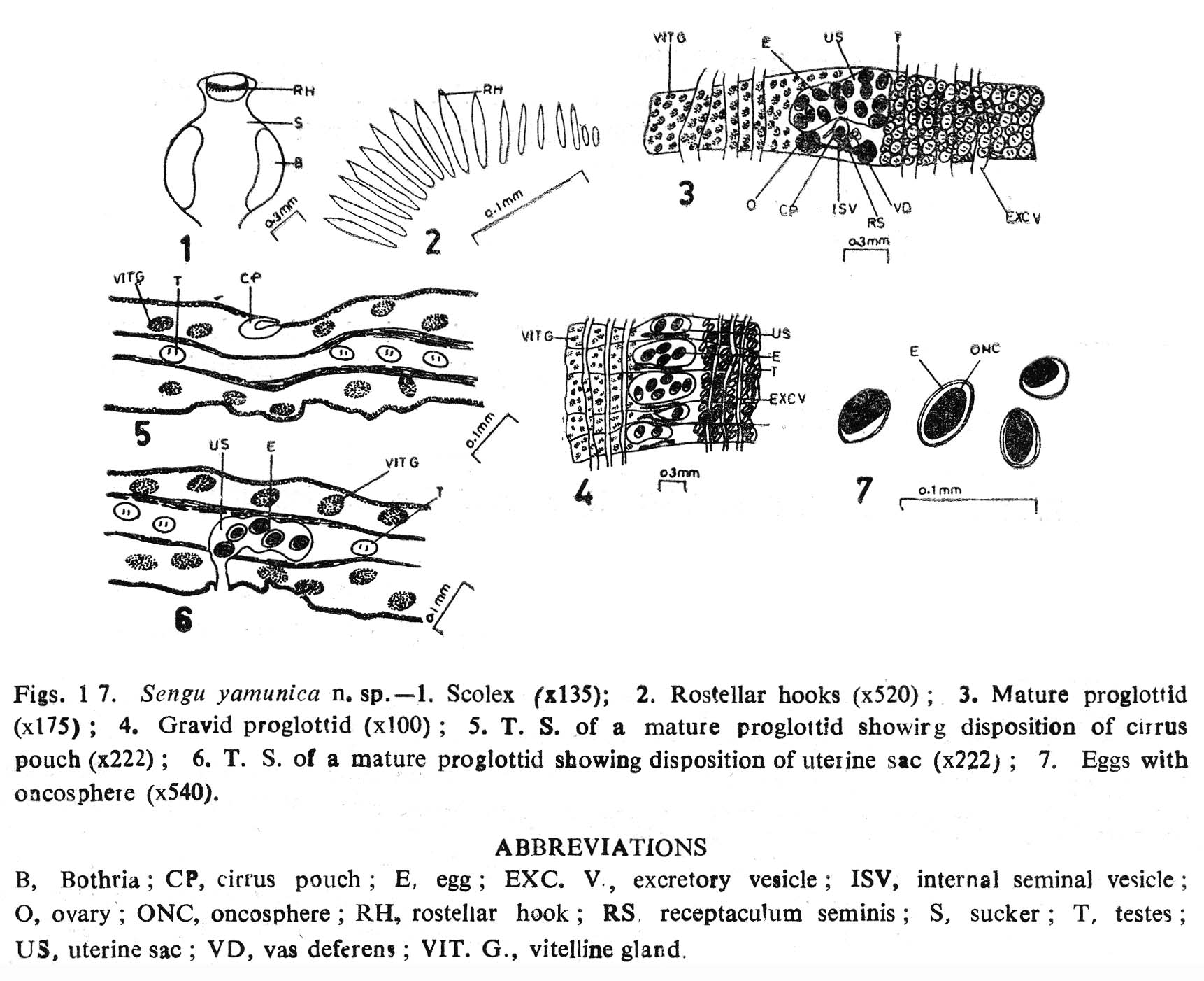 Gairola D. and S. K. Malhotra. 1986. Cestode fauna of food fishes in the aquatic ecosystems of Indian sub-humid region. I. Senga yamunica n. sp. from Mystus vittatus. Indian Journal of Helminthology 3: 59-62. (7350) |