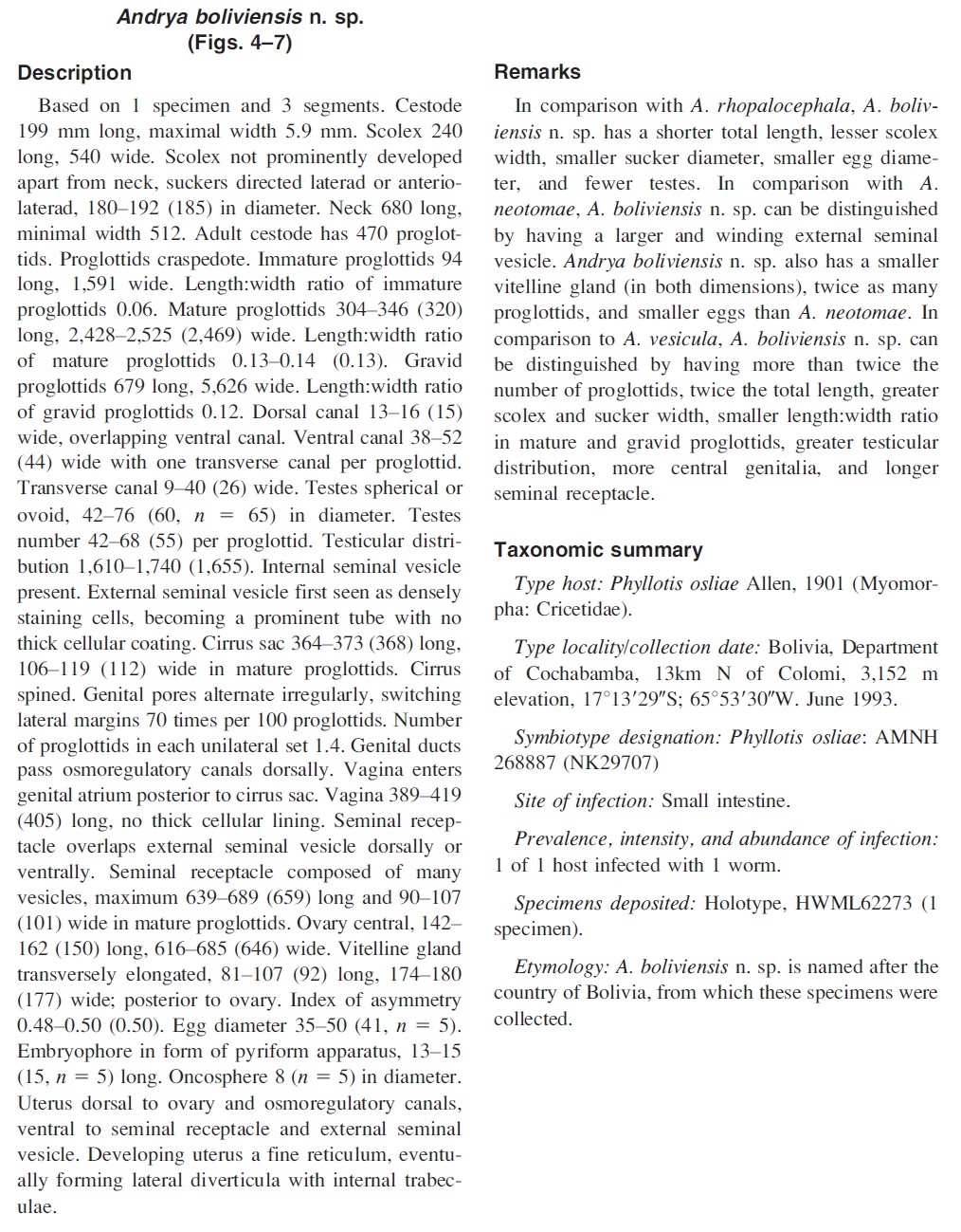Haverkost, T. R. and S. L. Gardner. 2010. Two new species of Andrya (Cestoda: Anoplocephalidae) from sigmodontine rodents in the Neotropics. Comparative Parasitology 77: 145-153. (4738) Download PDF |