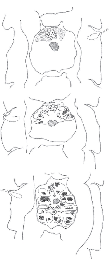 FIGURE 8. Uterine development in a series of segments from Monoecocestus eljefe n. sp.