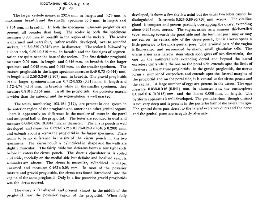 Singh, K. S. 1962. Parasitological survey of Kumaun region. Part IX. Indotaenia indica n. g., n. sp. (Cestoda: Anoplocephalidae) from the Himalayan flying squirrel. Indian Journal of Helminthology 14: 86-91. (5611) Download PDF |